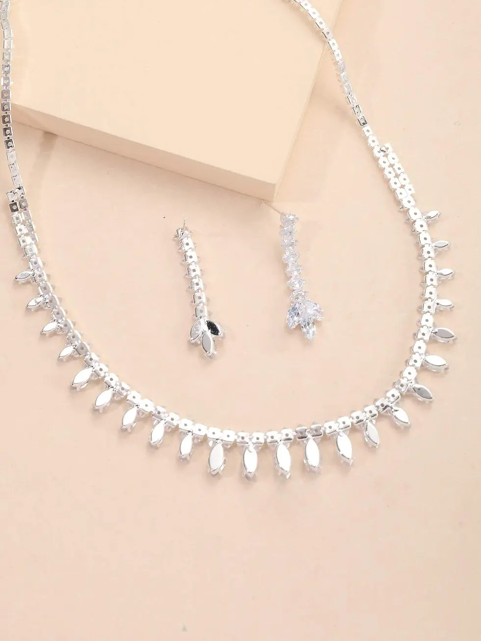 Jade Lion Square Diamante Necklace and Earrings Set