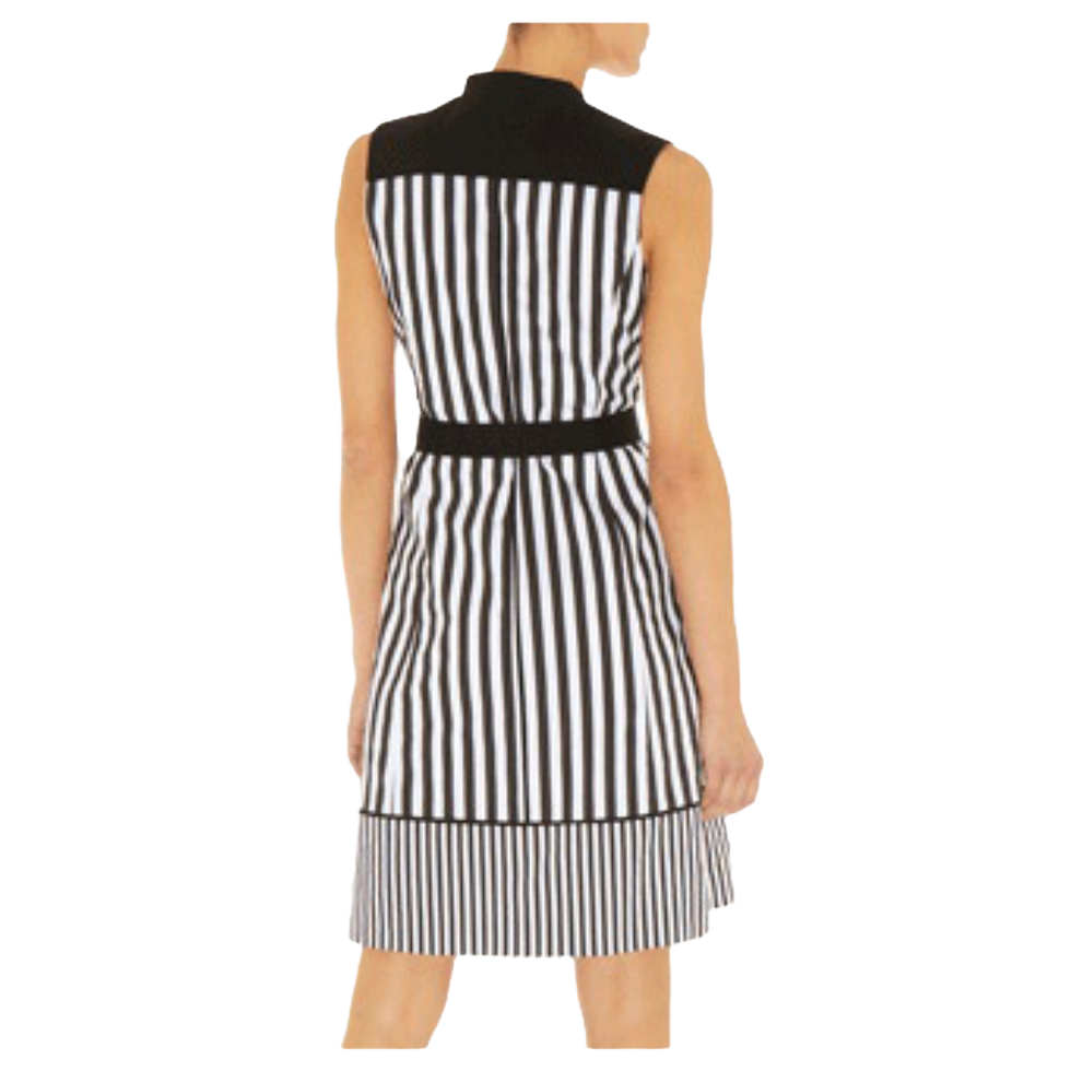 Karen Millen Black & White Striped Cotton Dress - DQ236