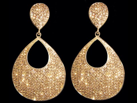JD 72 || Kardashian Large Crystal Paved HipHop Hoop Pear Teardrop Earrings